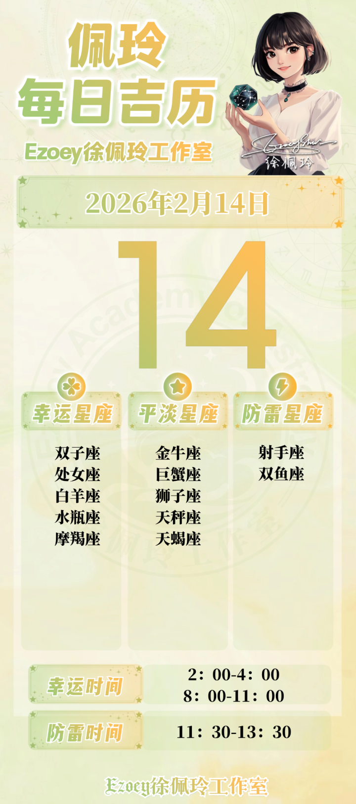 亚博体育 【2.14日播报】情东说念主节原意! 交运星座: 双子座、处女座、白羊座、水瓶座、摩羯座——Ezoey徐佩玲26年星座播报
