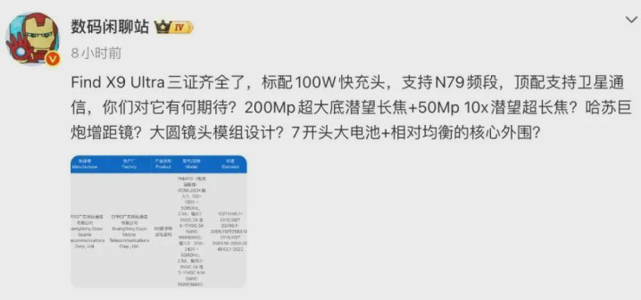 另外爆料显现,Find X9 Ultra极有可能塞进去一块7000mAh-7300mAh级别的超大容量硅碳负极电板 。