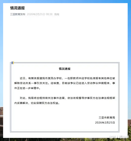 2月25日上昼,三亚市磨真金不怕火局发布情况通报,措辞十分认真,也很克制。通报里莫得预设“谁对谁错”的谈德审判,而是明确指出“当今该争议也曾插足就业争议仲裁时局”,磨真金不怕火局的脚色是“全程抓续和顺”、“照章依规督导”、“在法律公法框架内妥善处分”,而且终点强调了“切实保险两边正当权利”。