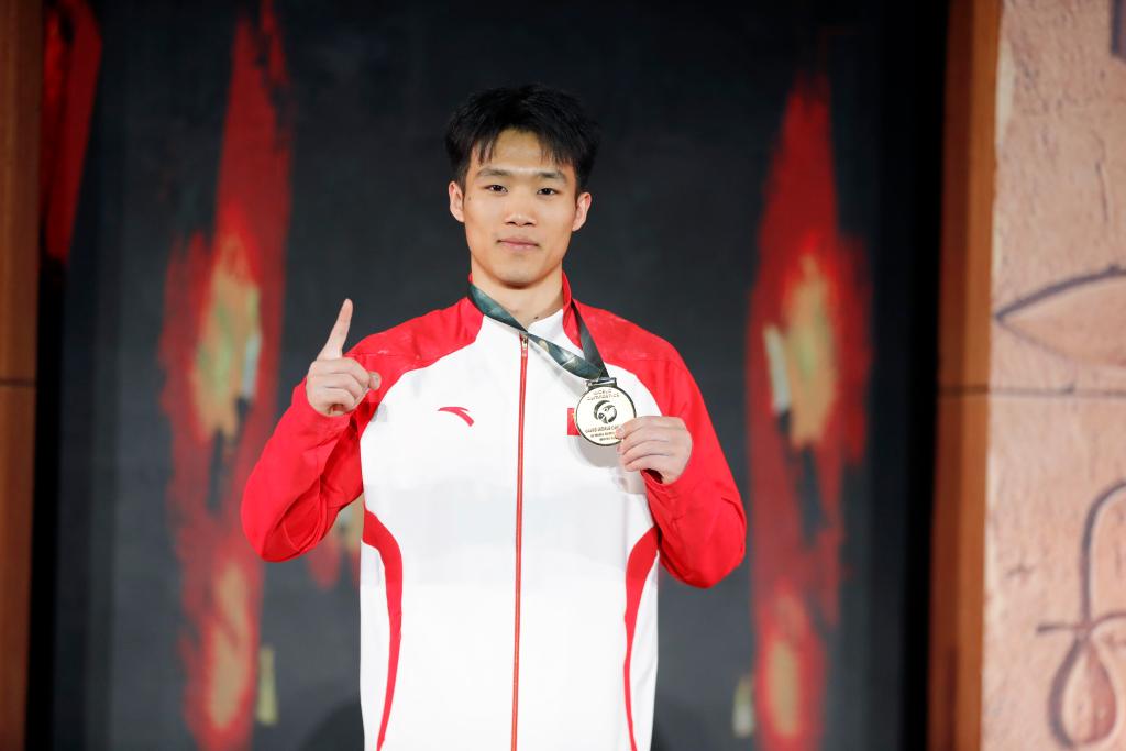 当地技巧4月6日,2026年国外体联体操世界杯开罗站男人单杠决赛在埃及开罗举行。图为冠军中国选手李鸿颜在受奖典礼上。新华社发(艾哈迈德·戈马摄)