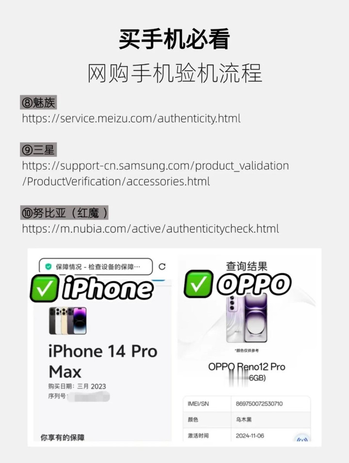 买手机不必依赖商家,不必怕被忽悠,掌捏这套官方验机秩序,几分钟就能完周密面核验,准确辞别原装机、革命机、组装机。经由简短、泰斗可靠、全品牌通用,生人也能快速学会。
