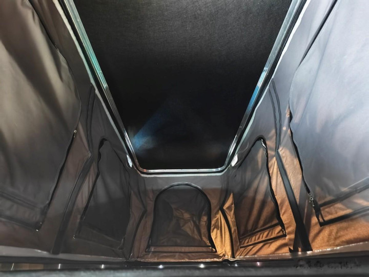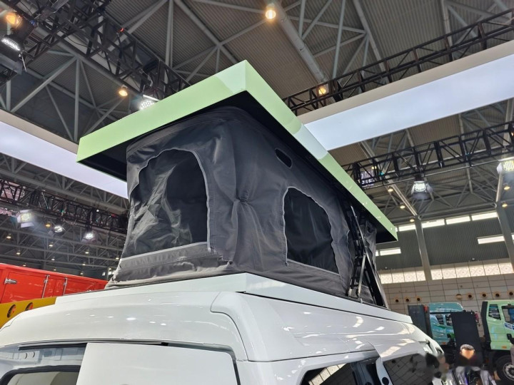 车顶的升降帐篷应该即是海豚K7车上最可人、最敬爱的方位了,这里就粗略是屋子的阁楼相似,升上去不错用来文娱、不雅景、休息,也不错给基层车身透风,降下来从车外看又粗略是在车顶装了个行李箱相似。