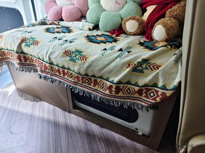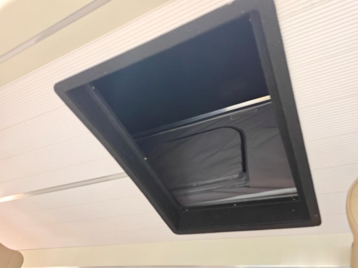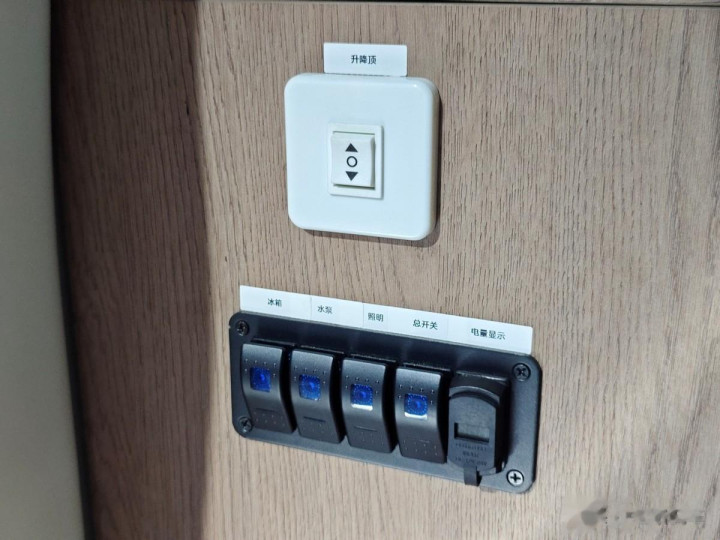 底本这里是车顶的升降帐篷,升降开关就在侧拉门的门口左侧,一按开关海豚K7宿营车的车顶就长高了。