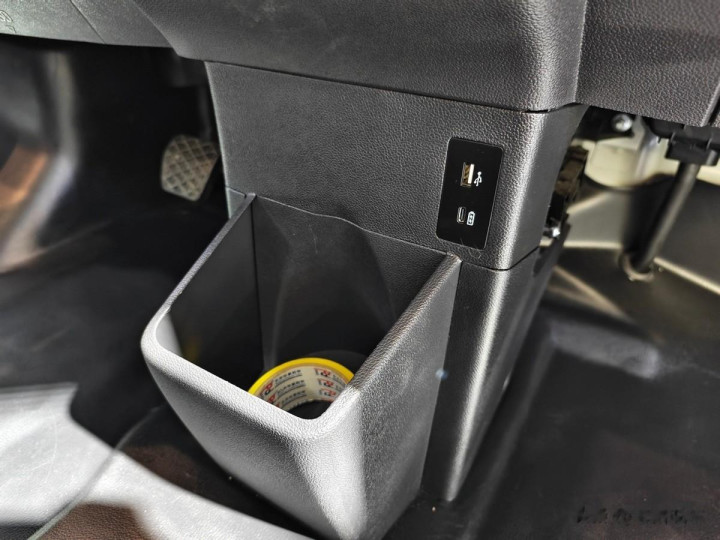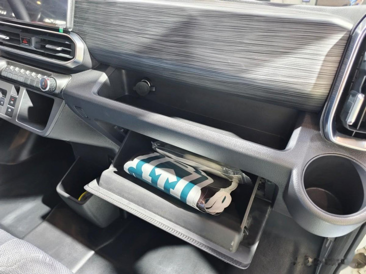 副驾驶员座椅前哨设有取电插口、储物格和储物箱